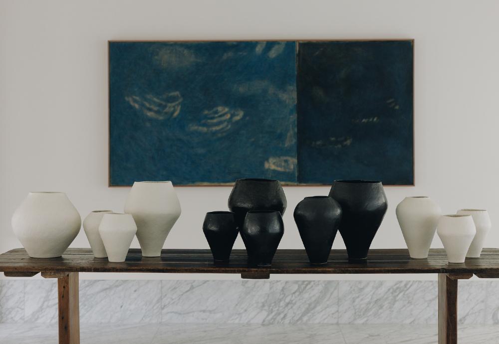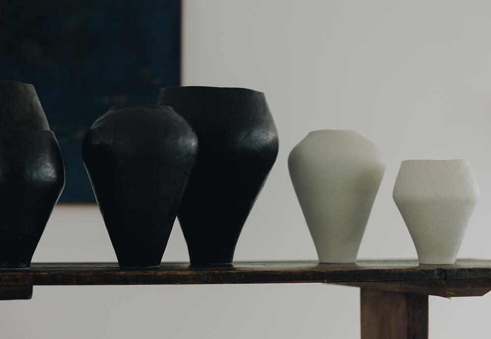 upon a space, offering a warm sense of solace. Her works, which range from sculptural vases to elegant